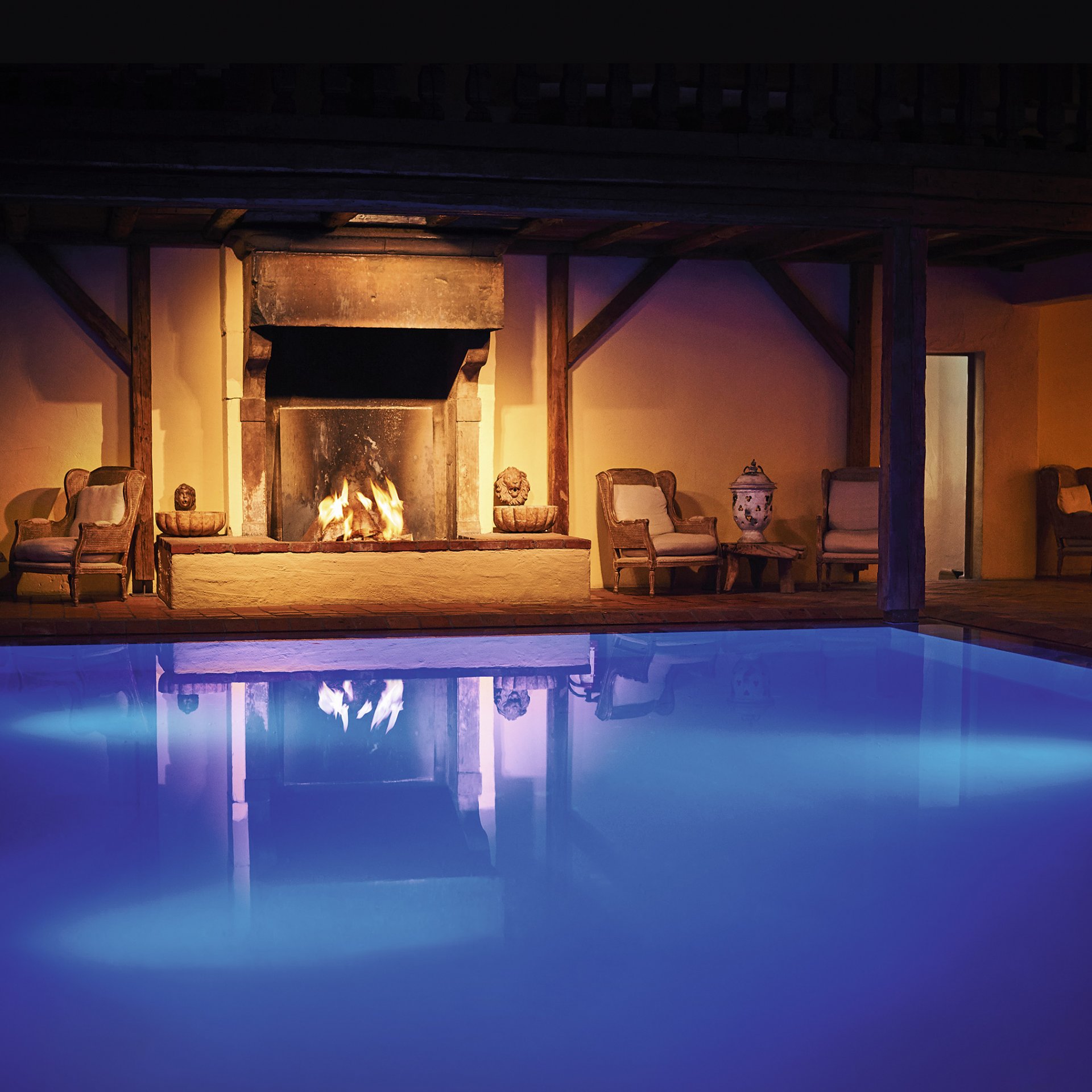 Wellness und SPA auf insgesamt ca. 5.000 qm Fläche mit Schwimmbad am Kamin, beheiztem Außenpool, japanischem Luftsprudelbecken, Kelo-Sauna, Kräuterkammer, Kneipp-Becken, Saline-Sauna, Dampfbad, Kaminzimmer, Fitnessraum, Familienpool mit extra Sauna für Kinder, Bleiche-Bibliothek zu Kunst und Philosophie, SPA-Cinema „Landtherme Lichtspiele“ sowie den großzügigen Ruheräumen mit extra vielen Liegen und großer Liegewiese.